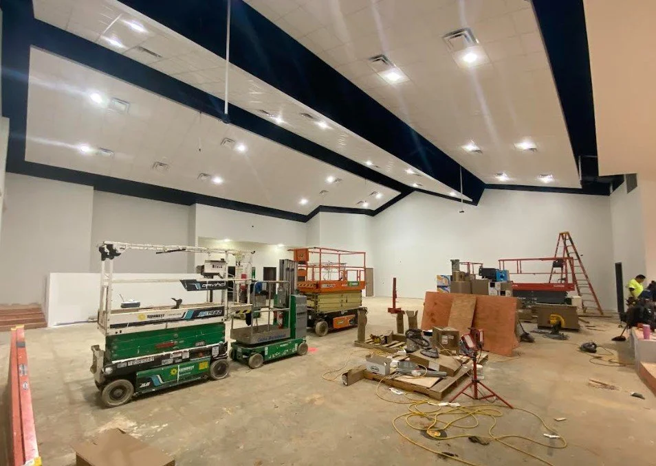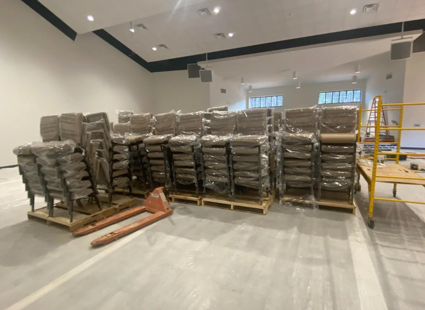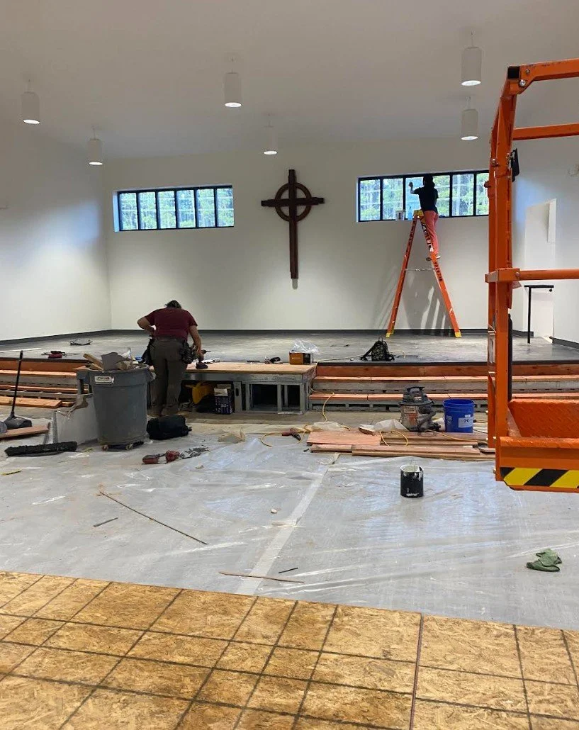 Stage Upgrades: We adjusted the stage to include a new step; the demo and reconstruction are finished, and the carpet is already installed.